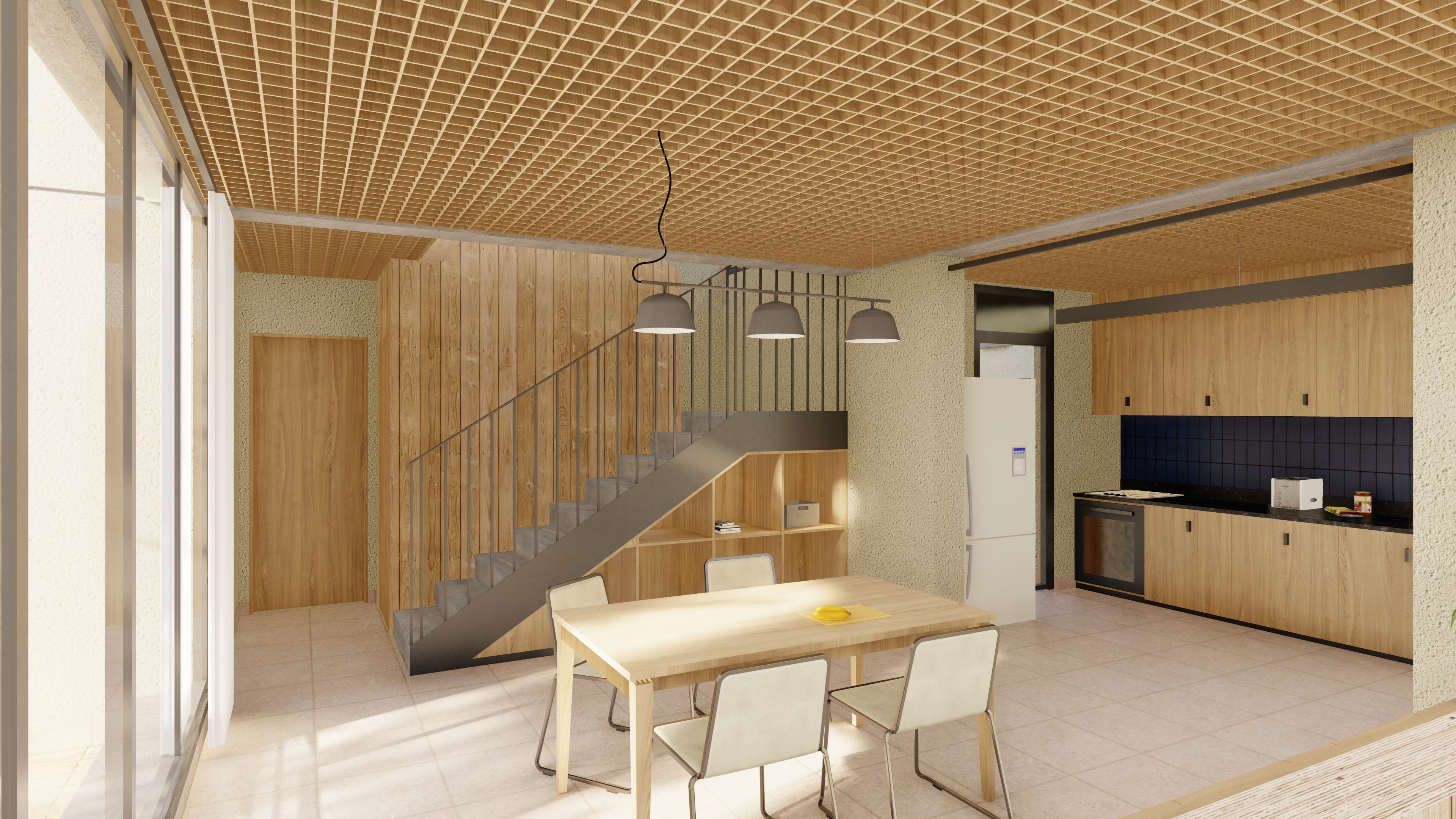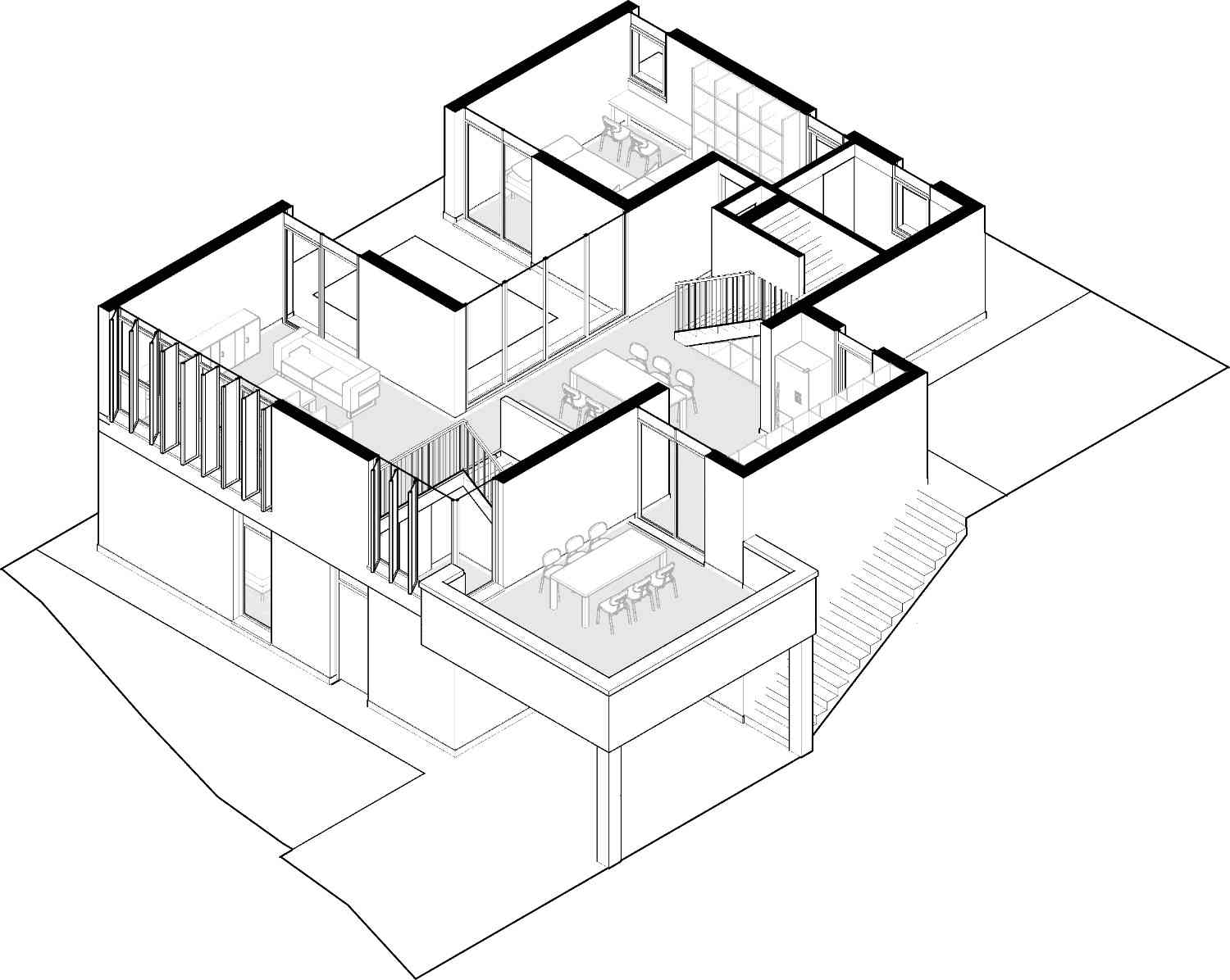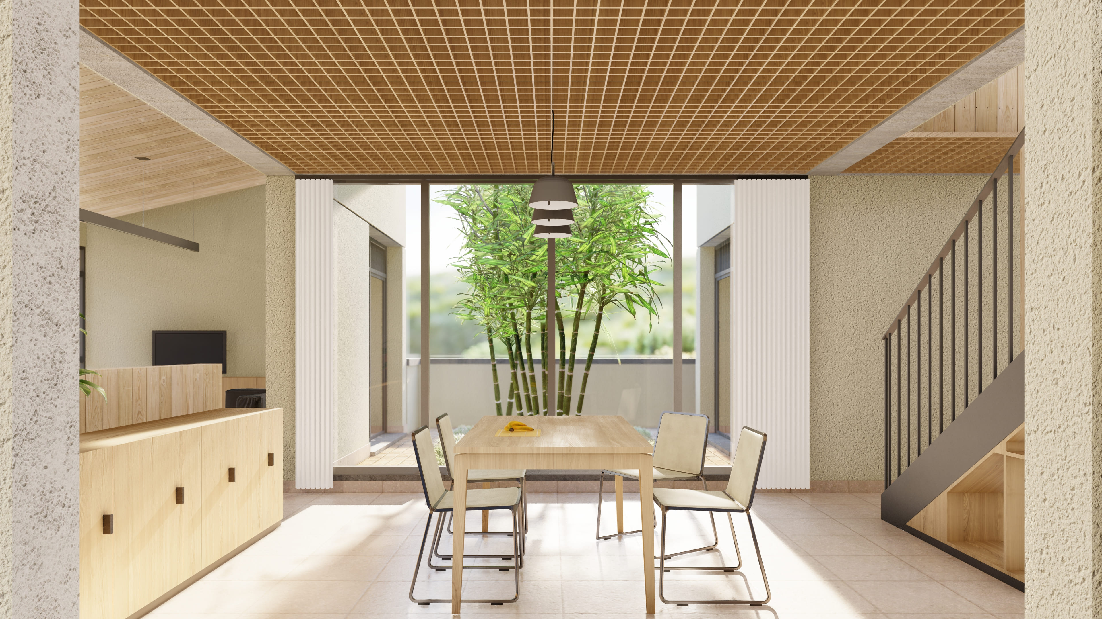 Situated on the slopes of Rebero Hill in Kigali, Rwanda, this residential project is thoughtfully integrated into the natural terrain. Comprising three distinct blocks at varying heights, the design makes full use of the site’s gradient to create a seamless balance between form and function. The lower block, positioned along the access road, establishes the public face of the home, accommodating the entry foyer, guest room, and living room. Ascending the slope, the central block contains the dining area and kitchen, carefully offset to frame a bamboo garden that fills the interiors with natural light. The upper block, set back from the road, is dedicated to the bedrooms, offering a quiet and private retreat. Situated on the slopes of Rebero Hill in Kigali, Rwanda, this residential project is thoughtfully integrated into the natural terrain. Comprising three distinct blocks at varying heights, the design makes full use of the site’s gradient to create a seamless balance between form and function.